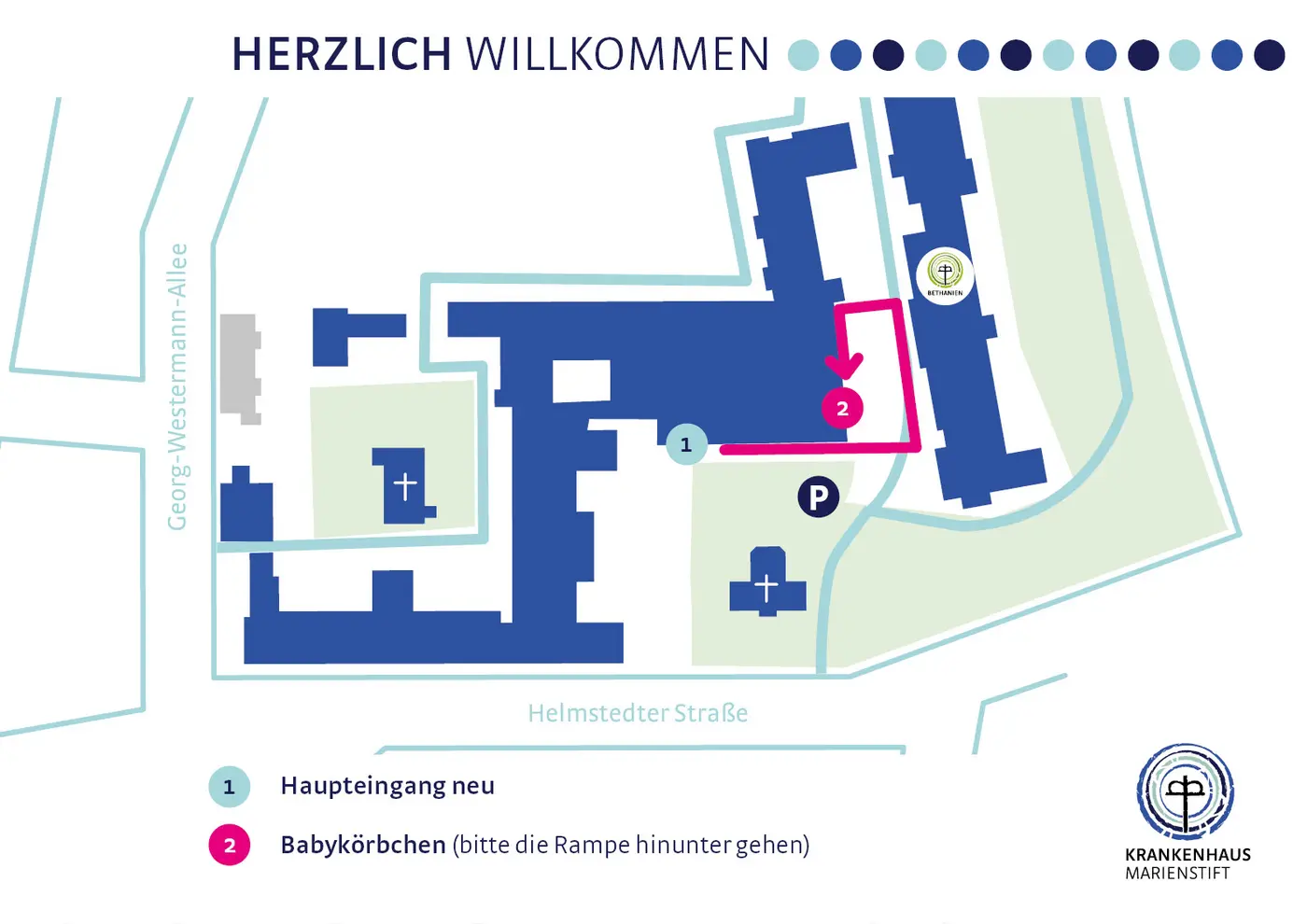 Unser Babykörbchen wurde 2001 installiert und liegt gut ausgeschildert, aber dennoch durch eine Hecke und einen Zaun vor Blicken geschützt, im Außenbereich unserer Frauenklinik.