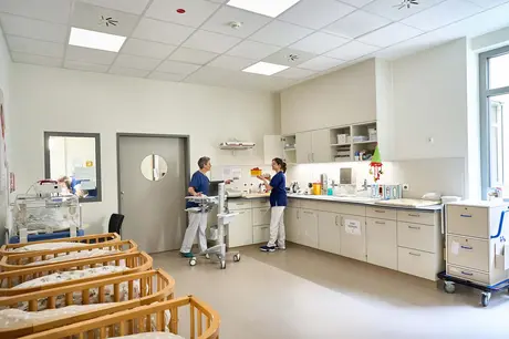 Während Ihres Aufenthaltes werden Sie von kompetenten Hebammen begleitet. Insgesamt arbeiten zwölf Hebammen in der Frauenklinik. In den meisten Fällen können sie Frauen – aufgrund der Zwölf-Stunden-Dienste – während der Entbindung eine kontinuierliche Betreuung ermöglichen. Dabei sind alle darum bemüht, die Geburtsbetreuung entsprechend der individuellen Bedürfnisse und Wünsche umzusetzen. Der Verlauf der Geburt und das Wohlbefinden von Mutter und Kind stehen dabei stets im Vordergrund. Alle Kolleginnen tun alles dafür, um den Familien die schönste Erinnerung an die Geburt ihres Kindes zu ermöglichen.