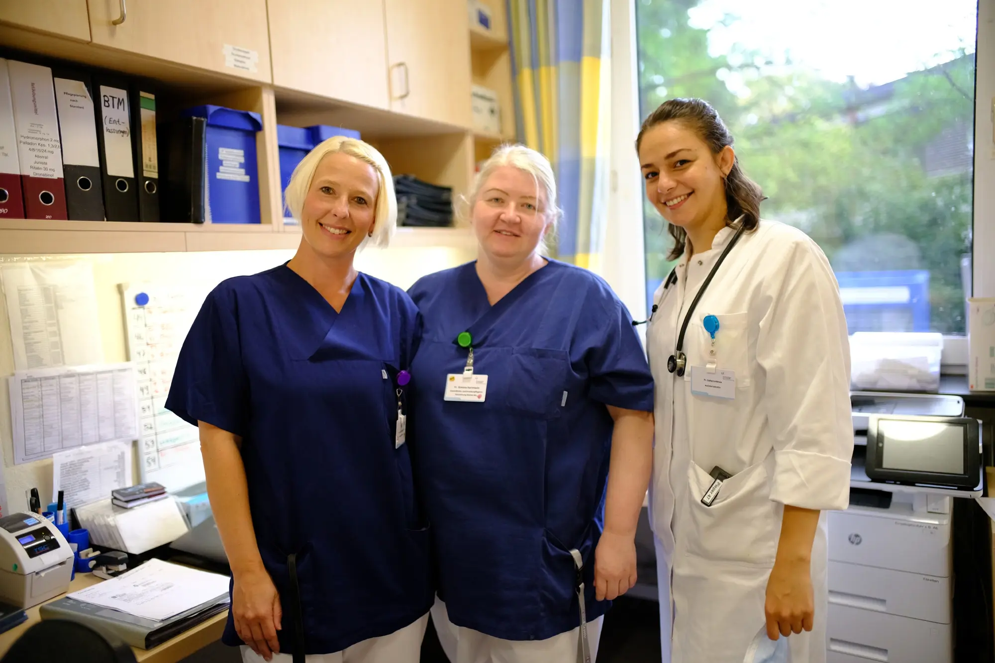 Die Fachkräfte werden durch werden durch Stationssekretär:innen, medizinische Fachangestellte und Stationsgehilfen:innen, sowie von Auszubildenden der Krankenpflegeschule unterstützt.